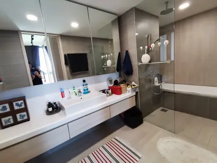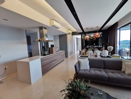 This penthouse spans 2,379 Square Feet. Due to its single loading as opposed to the usual duplex penthouse, the full size can be appreciated with almost no wasted space in every square foot in the unit. The layout has been well-curated with sheer efficiency and functionality in mind, where the wide frontage balcony compliments the living and dining area by extending outwards towards the horizons of the panoramic view.
